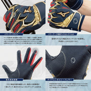 MIZUNO 棒球擊球服手套 Mizuno 專業矽膠 Power Arc DI 雙手 1EJEA250