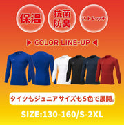 這不僅僅是“溫暖”。拉絨內襯襯衫,具有彈性、抗菌和除臭特性。採用符合潮流的圓領。我們的目標是足球場景所需的功能和輪廓。比傳統壓縮內衣有更多空間的輪廓。